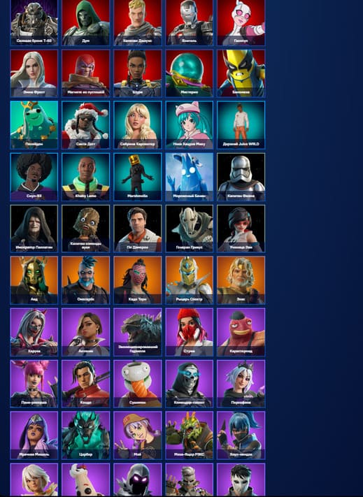 ⭐️ Боевой пропуск: 9-21 сезоны⚔️ PVE💥 Всего скинов: 110+🔥 Топ скины: Тор, Грут, Дэдпул, Дженнифер Уолтерс, Мистик, Росомаха